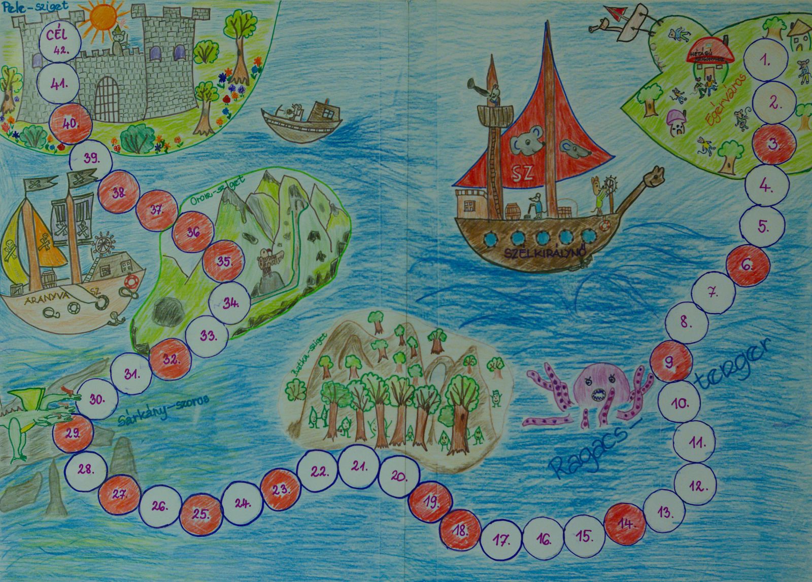 14. mező A Szélkirálynő veszélybe került a Ragacs-tengeren. Meg kell etetni a polipot.